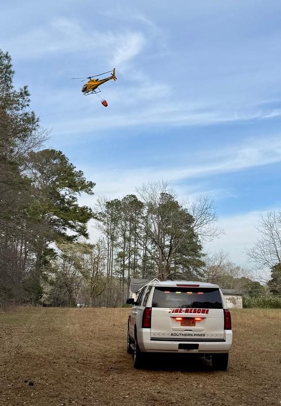 The North Carolina Forest Service requested and received approval for aerial resources, including a spotter plane, two fixed-wing water drop aircraft, and a helicopter. Ground resources included three plow units from Moore, Lee, and Richmond Counties, along with nine forest rangers and equipment operators.