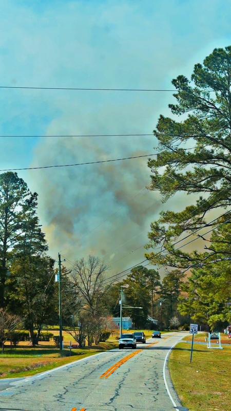 | On Friday just after 3:30 p.m. Cypress Pointe Fire/Rescue Engine 221 (E221) was returning from a previous call when personnel observed a large column of smoke in the area of Union Church Road within the Town of Vass. Forestry 2 (F2) also observed the smoke column and responded to investigate as well. E221 and F2 arrived on scene simultaneously and quickly determined the incident to be an out-of-control wildfire.
